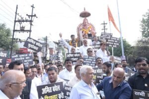Agarwal Samaj : सभी वक्ताओं ने एकजुट होकर कहा कि, “हम छत्तीसगढ़ महतारी का सदैव वंदन करते हैं, लेकिन यह व्यक्ति मूर्ति को लांघकर महतारी को अपमानित कर रहा है।” वक्ताओं ने आरोपी पर ‘कांसा चोर’ होने का आरोप लगाते हुए कहा कि बूढ़ा देव की मूर्ति बनाने के नाम पर इसने कांसा चोरी की है। उन्होंने कहा कि आरोपी पर विभिन्न धाराओं के तहत 36 से अधिक केस लंबित हैं, इसलिए इस पर रासुका लगनी ही चाहिए।