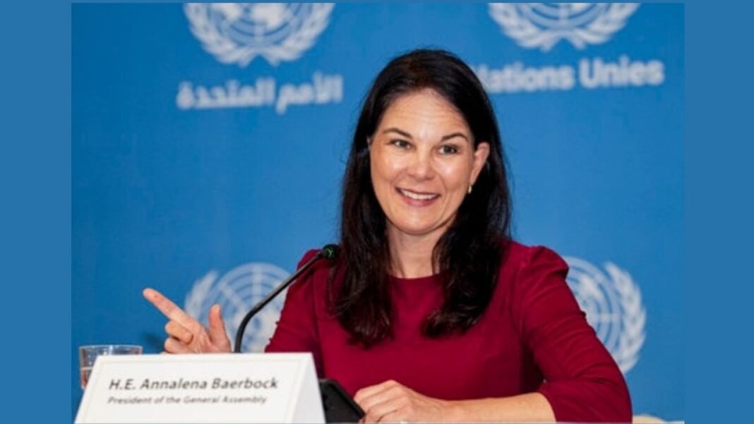 Annalena Baerbock India Visit : नई दिल्ली: संयुक्त राष्ट्र महासभा (UNGA) की अध्यक्ष एनालेना बेयरबॉक ने मंगलवार को अमेरिका के नेतृत्व वाले ‘बोर्ड ऑफ पीस’ पर कड़ा प्रहार किया। भारत दौरे पर आईं बेयरबॉक ने कहा कि वैश्विक शांति और सुरक्षा सुनिश्चित करने के लिए केवल संयुक्त राष्ट्र ही एकमात्र सक्षम मंच है, क्योंकि यहाँ छोटे-बड़े और अमीर-गरीब हर देश को बराबरी का स्थान मिलता है।