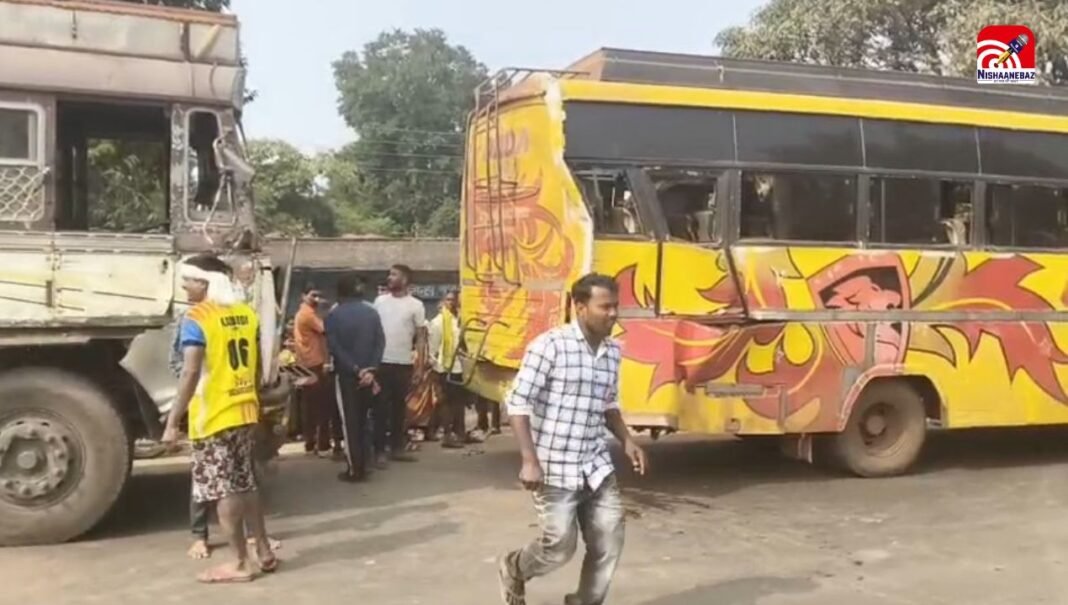 बालोद: जिले के डौंडी थाना क्षेत्र अंतर्गत ग्राम लिमहाटोला में शुक्रवार को एक भीषण सड़क हादसा हो गया। यात्रियों को उतारने के लिए सड़क किनारे खड़ी एक यात्री बस को पीछे से तेज रफ्तार ट्रक ने जोरदार टक्कर मार दी। टक्कर इतनी जबरदस्त थी कि बस के आगे खड़ी दो मोटरसाइकिलें भी उसकी चपेट में आ गईं।