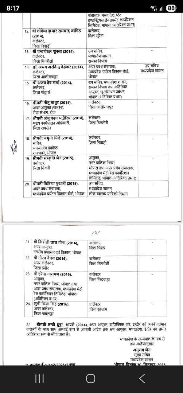 Bhopal : भोपाल में प्रशासनिक फेरबदल: 12 जिलों के कलेक्टर बदले, हरेंद्र नारायण छिंदवाड़ा के नए कलेक्टर, देखें सूची…