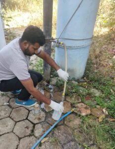 ड्राइवर कर रहा पानी के सैंपल कलेक्शन