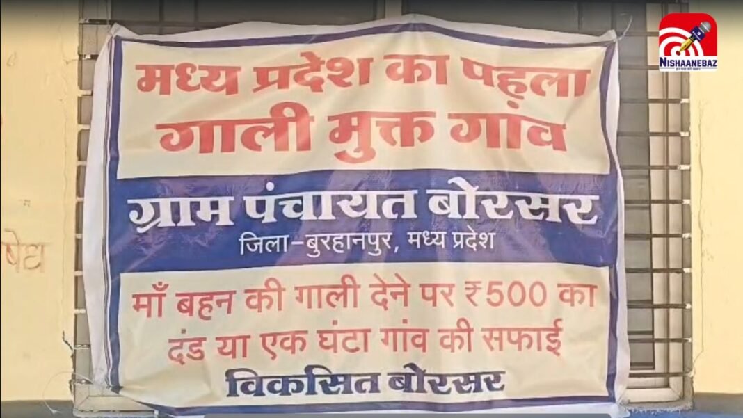 निशानेबाज न्यूज़ डेस्क (बुरहानपुर): मध्यप्रदेश के बुरहानपुर जिले का छोटा सा बोरसर गांव इन दिनों पूरे प्रदेश में चर्चा का केंद्र बना हुआ है। करीब 6 हजार की आबादी वाला यह गांव अब MP का पहला “गाली-गलौच मुक्त गांव” बन गया है। यहां ग्राम पंचायत ने एक अनोखा नियम लागू किया है, जिसके तहत गाली देने पर सख्त सजा का प्रावधान किया गया है।