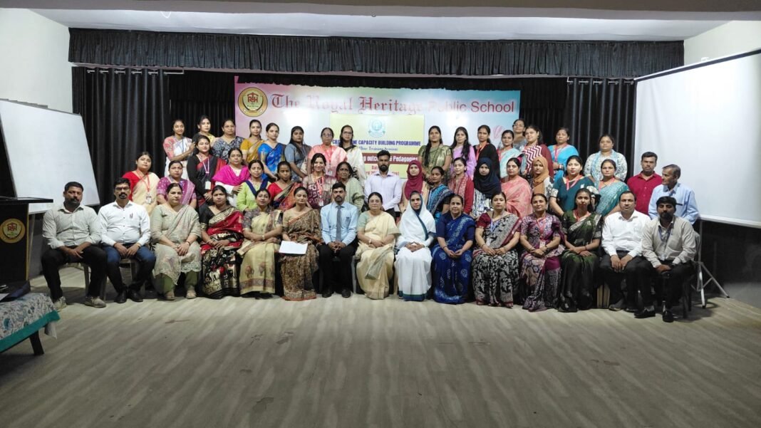 CBSE Teachers Workshop : बरगी: द रॉयल हेरिटेज पब्लिक स्कूल में शनिवार, 25 अप्रैल को शिक्षकों के व्यावसायिक और कौशल विकास के उद्देश्य से एक दिवसीय “शैक्षणिक क्षमता निर्माण कार्यशाला” का आयोजन किया गया। सीबीएसई बोर्ड, नई दिल्ली के निर्देशानुसार आयोजित इस कार्यशाला का मुख्य विषय “लर्निंग आउटकम्स एवं पेडागॉजी” (अधिगम परिणाम एवं शिक्षण शास्त्र) रहा। इस प्रशिक्षण कार्यक्रम में जबलपुर सहित आसपास के जिलों से आए कुल 52 शिक्षकों ने उत्साहपूर्वक भाग लिया।
