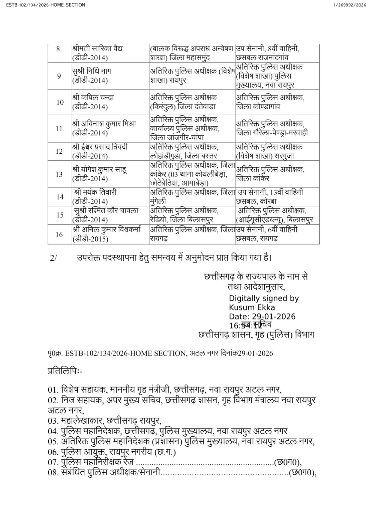 प्रशासनिक कसावट की तैयारी: पदोन्नति के साथ ही इन अधिकारियों की नई नियुक्तियां भी विभिन्न जिलों और सशस्त्र वाहिनी (बटालियन) में की गई हैं। अतिरिक्त पुलिस अधीक्षक रैंक पर इन अधिकारियों की तैनाती से जिलों में कानून व्यवस्था और प्रशासनिक कार्यों में अधिक कसावट आने की उम्मीद है। विशेष रूप से नक्सल प्रभावित क्षेत्रों और शहरी कानून व्यवस्था के प्रबंधन में इन अनुभवी अधिकारियों की भूमिका महत्वपूर्ण होगी।