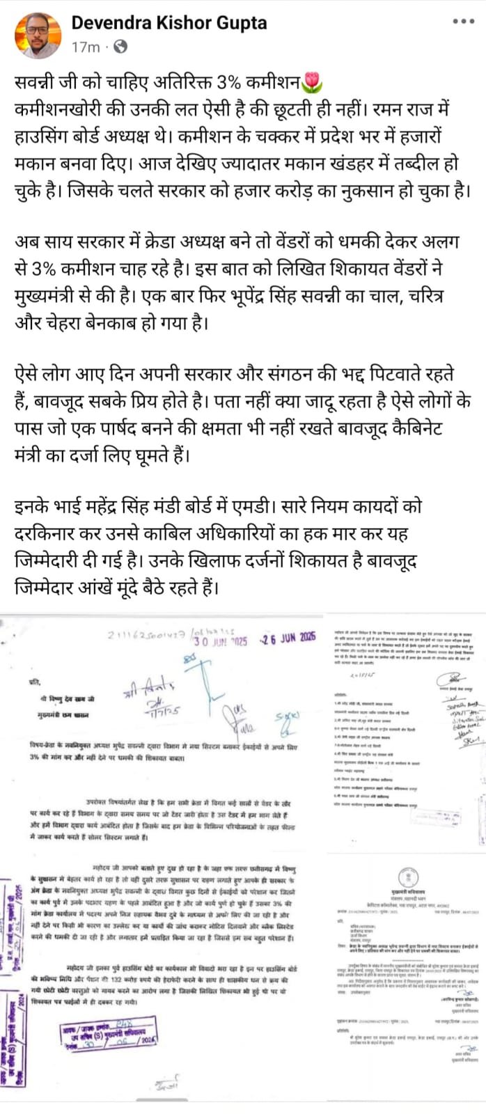 CG NEWS : उधर, भूपेंद्र सवन्नी ने सभी आरोपों को निराधार बताया है। उन्होंने कहा कि उन्हें इस तरह के किसी भी लेनदेन की जानकारी नहीं है और वह जल्द ही कार्यालय पहुंचकर पूरे मामले की जानकारी लेंगे। फिलहाल भाजपा की ओर से इस पर कोई आधिकारिक प्रतिक्रिया नहीं आई है, लेकिन सोशल मीडिया और राजनीतिक गलियारों में यह मामला तेजी से चर्चा में है।