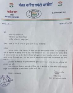 मंडल कांग्रेस कमेटी धरसीवां के अध्यक्ष साहिल खान ने परियोजना अधिकारी को लिखित शिकायत सौंपते हुए आरोप लगाया कि ई-केवाईसी के नाम पर क्षेत्र की महिलाओं को बार-बार कार्यालय और च्वाइस सेंटरों में भटकाया जा रहा है।