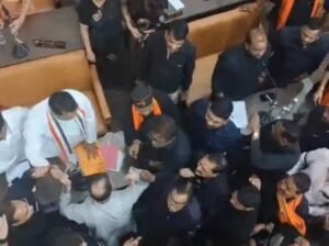 भाजपा पार्षद अपनी सीटों से उठकर उनके पास पहुंच गए, नारेबाजी की और इस दौरान माइक छीनने व धक्का-मुक्की की स्थिति बन गई। हालात बिगड़ते देख सभापति सूर्यकांत राठौड़ को हस्तक्षेप करना पड़ा और बैठक की कार्यवाही कुछ समय के लिए स्थगित करनी पड़ी।