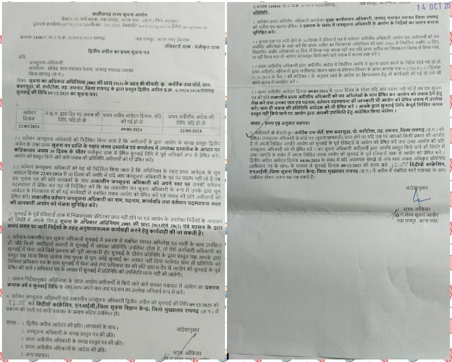 आयोग ने इस प्रकरण की द्वितीय अपील की सुनवाई की तारीख 9 दिसंबर 2025 को निर्धारित की है। यह सुनवाई वीडियो कॉन्फ्रेंसिंग के माध्यम से जिला सूचना विज्ञान केंद्र, रायगढ़ में आयोजित होगी। अपीलकर्ता और संबंधित अधिकारियों को इस निर्धारित तिथि पर उपस्थित रहने के आदेश दिए गए हैं। इस प्रकरण से एक बार फिर यह स्पष्ट हो गया है कि ग्रामीण स्तर पर सूचना के अधिकार कानून (RTI) का मखौल उड़ाया जा रहा है और निचले स्तर के अधिकारी लोकतांत्रिक पारदर्शिता के प्रति कितने उदासीन और लापरवाह हैं।