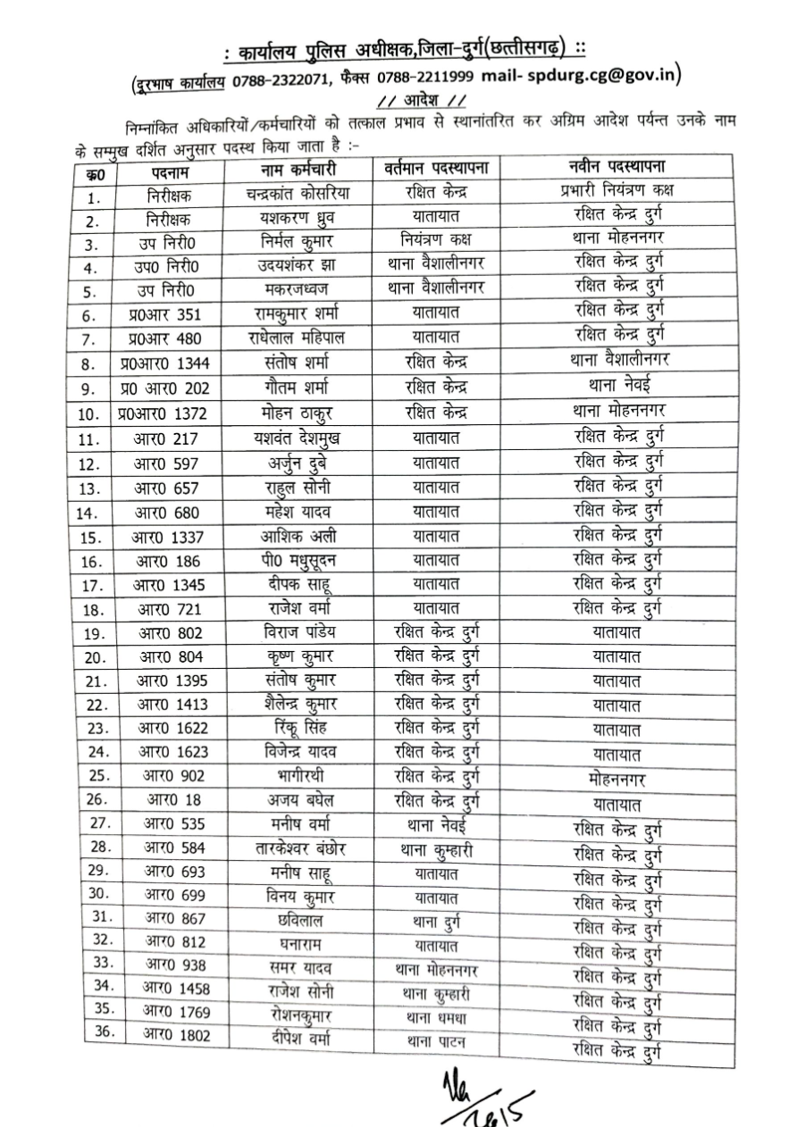 CG Police Transfer : पुलिस विभाग में बड़े पैमाने पर फेरबदल, 50 पुलिस कर्मियों का तबादला, 2 निरीक्षक और 40 आरक्षक इधर से उधर, देखें लिस्ट…
