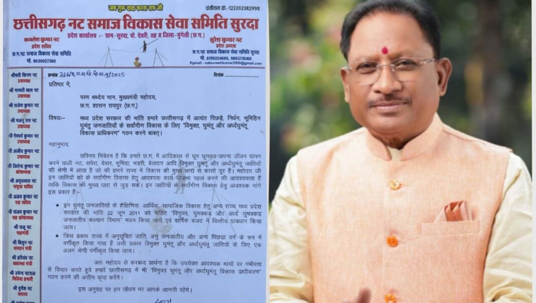 C.G News : छत्तीसगढ़ में विमुक्त-घुमंतु जनजातियों के विकास के लिए प्राधिकरण गठन की मांग, नट समाज ने CM साय को लिखा पत्र