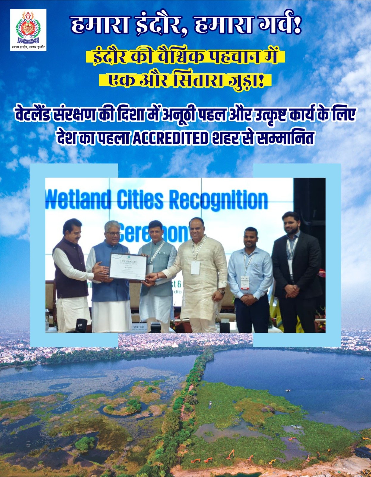 इंदौर : इंदौर ने स्वच्छ वायु सर्वेक्षण में पूरे देश में शीर्ष स्थान प्राप्त किया है। वेटलैंड सिटी के सर्टिफिकेट से सम्मानित इंदौर ने 200 में से पूरे 200 अंक हासिल कर इतिहास रचा है।