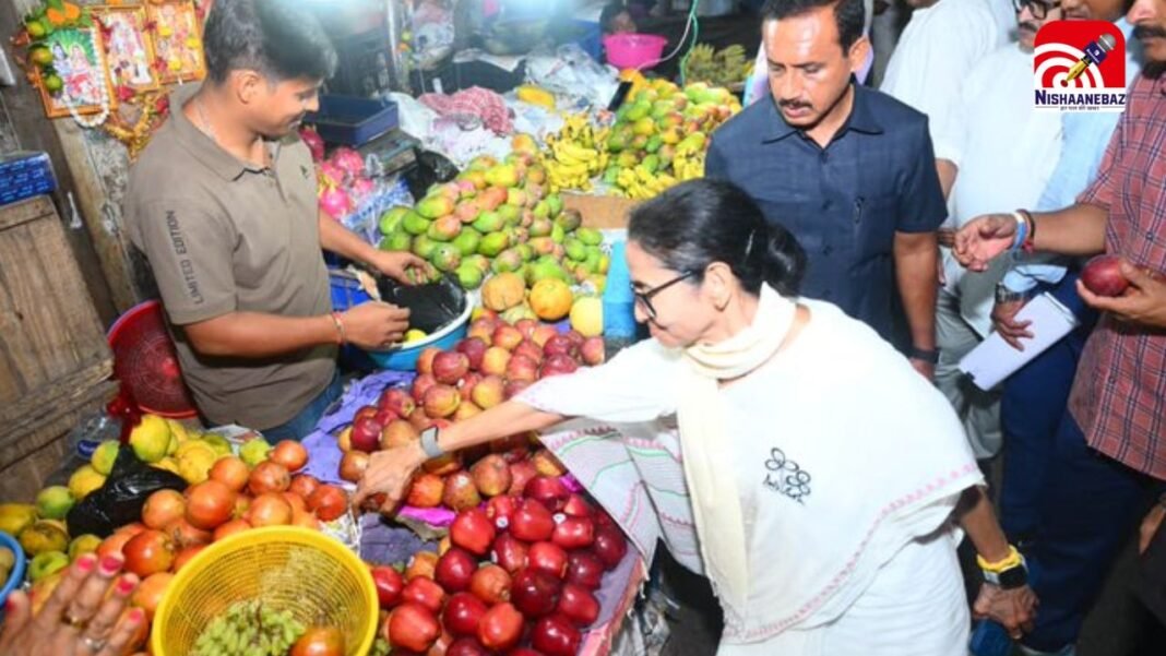 निशानेबाज न्यूज़ डेस्क : पश्चिम बंगाल विधानसभा चुनाव 2026 के बीच जहां राजनीतिक बयानबाजी और रैलियों का दौर तेज है, वहीं मुख्यमंत्री ममता बनर्जी ने एक अलग ही अंदाज में जनता से जुड़ने की कोशिश की। रविवार (26 अप्रैल) को एक चुनावी रैली से लौटते समय वह अचानक कोलकाता के भवानीपुर स्थित सब्जी बाजार पहुंच गईं, जिससे वहां मौजूद लोग हैरान रह गए।