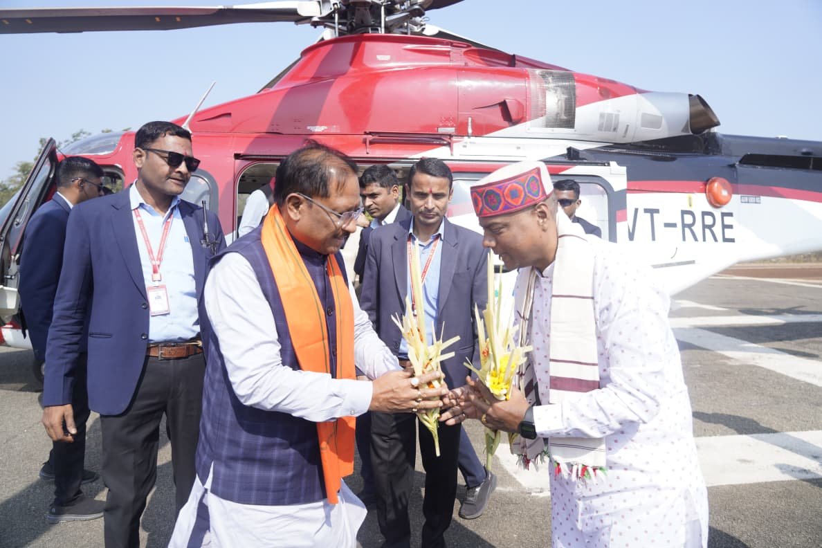 CM Vishnu Deo Sai Dantewada : मुख्यमंत्री विष्णुदेव साय का कारली हेलीपैड पर भव्य स्वागत; डिप्टी सीएम विजय शर्मा और पर्यटन मंत्री भी रहे साथ