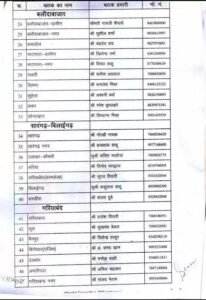 नियुक्त प्रभारियों की प्रमुख सूची: