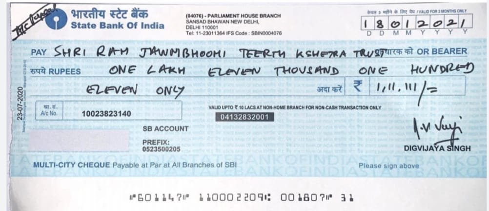 दान का इतिहास: बता दें कि श्री सिंह ने मंदिर निर्माण के लिए 18 जनवरी 2021 को 1,11,111 रुपये की गुप्त दान राशि श्रीराम जन्मभूमि तीर्थक्षेत्र ट्रस्ट को सौंपी थी।