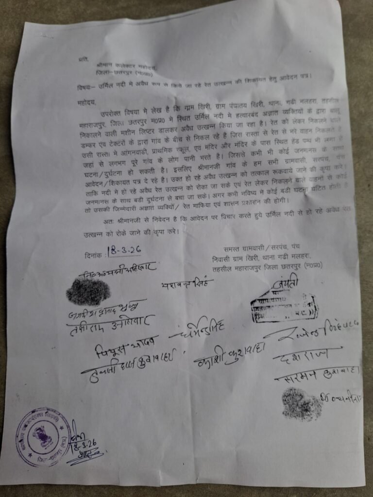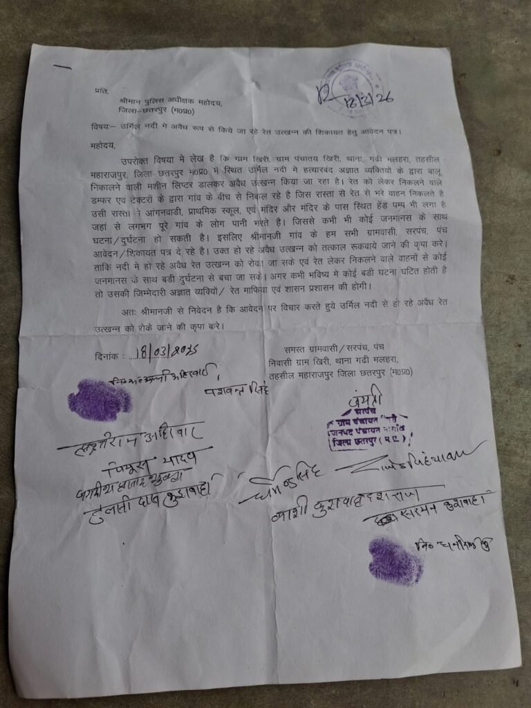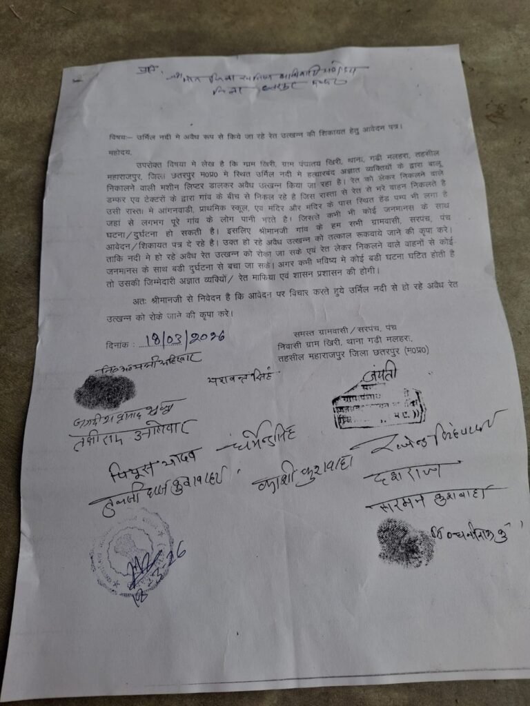 जब पूरा गांव विरोध में है और लिखित शिकायतें दी जा चुकी हैं, तो आखिर खनिज विभाग की मशीनरी क्यों रुकी हुई है? माफियाओं के हवाले जिले की खनिज संपदा कर दी गई है, जिससे शासन को करोड़ों के राजस्व की हानि हो रही है और पर्यावरण को अपूरणीय क्षति पहुँच रही है।