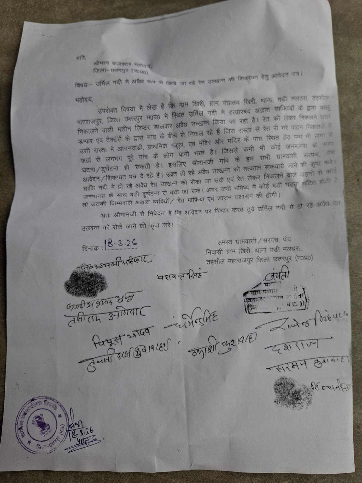 जब पूरा गांव विरोध में है और लिखित शिकायतें दी जा चुकी हैं, तो आखिर खनिज विभाग की मशीनरी क्यों रुकी हुई है? माफियाओं के हवाले जिले की खनिज संपदा कर दी गई है, जिससे शासन को करोड़ों के राजस्व की हानि हो रही है और पर्यावरण को अपूरणीय क्षति पहुँच रही है।