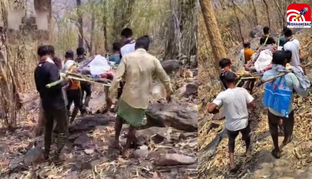 निशानेबाज न्यूज़ डेस्क :  छत्तीसगढ़ के गरियाबंद जिले के मैनपुर क्षेत्र से स्वास्थ्य सेवाओं की बदहाल स्थिति का एक गंभीर मामला सामने आया है। यहां कमार जनजाति के 60 वर्षीय मनू राम को तबीयत बिगड़ने के बाद परिजनों को खाट में लादकर करीब 17 किलोमीटर तक पहाड़ी रास्तों से नीचे लाना पड़ा। सबसे चौंकाने वाली बात यह रही कि पंचायत मुख्यालय तक पहुंचने के बाद भी उन्हें एंबुलेंस की सुविधा नहीं मिल सकी।