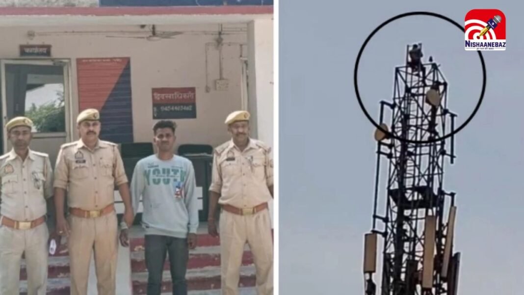 निशानेबाज न्यूज़ डेस्क : उत्तर प्रदेश के गाजीपुर जिले में एक युवक ने बॉलीवुड फिल्म ‘शोले’ के मशहूर सीन की तरह टावर पर चढ़कर प्रेमिका से मिलने की जिद पकड़ ली। इस घटना ने इलाके में सनसनी फैला दी।