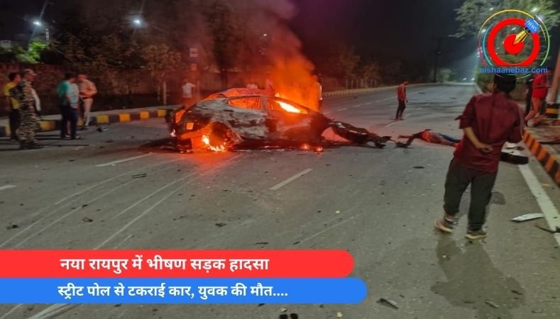 रायपुर। नया रायपुर के सेक्टर-17 में एक तेज़ रफ्तार कार स्ट्रीट पोल से टकरा गई, जिससे कार में आग लग गई और वह पूरी तरह जलकर खाक हो गई। हादसे में कार चला रहे युवक गौतम की मौके पर ही मौत हो गई, जबकि उसके साथ सवार दो अन्य युवक गंभीर रूप से घायल हो गए हैं। तीनों युवक शराब के नशे में थे।
