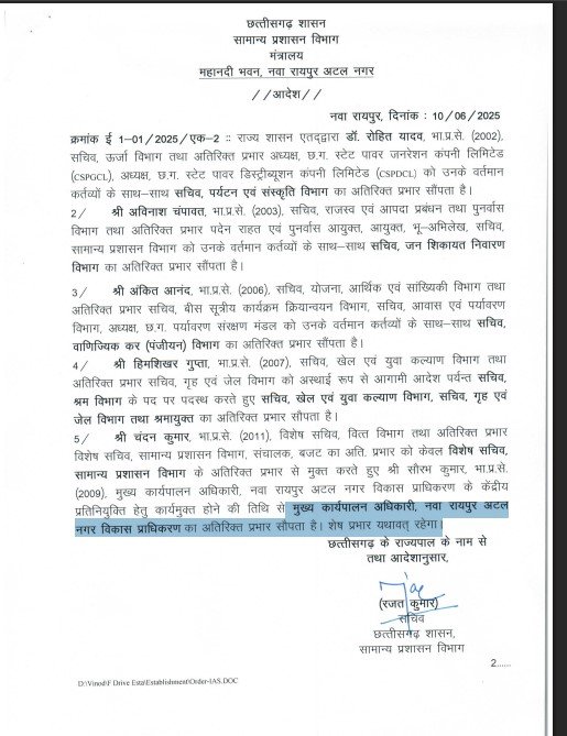 IAS Transfer : छत्तीसगढ़ में IAS अधिकारियों की जिम्मेदारियों में बड़ा बदलाव: 5 अधिकारियों को मिला नया प्रभार, देखें लिस्ट…