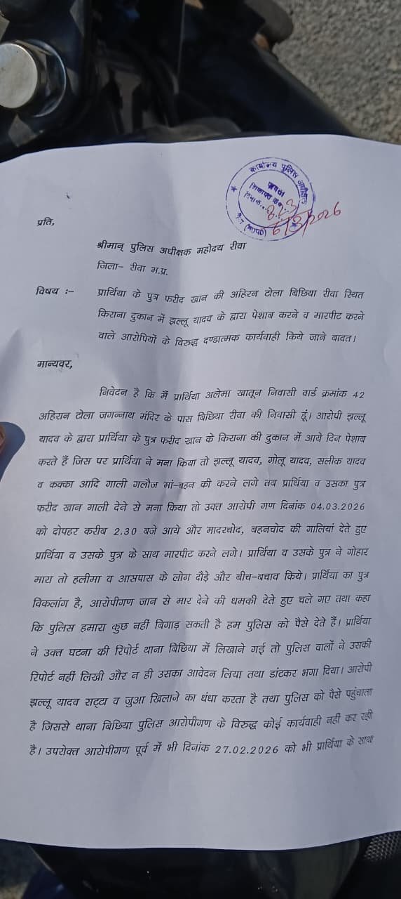 Illegal Betting Racket Rewa : रीवा (06 मार्च 2026): बिछिया थाना क्षेत्र के अहिरान टोला में इन दिनों सटोरिये झल्लू यादव की दहशत कायम है। आरोप है कि स्थानीय पुलिस की मिलीभगत के चलते यह सटोरिया बेखौफ होकर खुलेआम पर्चियों के जरिए सट्टे का कारोबार चला रहा है। मोहल्ले की महिलाओं ने जब इस अवैध गतिविधि का विरोध किया, तो सटोरिये ने न केवल उनके साथ बदसलूकी की, बल्कि अश्लील इशारे करते हुए जान से मारने की धमकियां भी दीं।