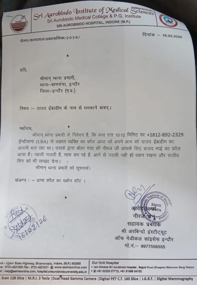 Indore Doctor Threatened D Gang : इंदौर (17 फरवरी 2026): इंदौर के एक निजी अस्पताल के असिस्टेंट मैनेजर डॉक्टर नीरज के लिए आवारा कुत्तों की शिकायत करना मुसीबत का सबब बन गया है। शहर में डॉग बाइट की बढ़ती घटनाओं को देखते हुए डॉक्टर ने अस्पताल कैंपस में मौजूद एक स्ट्रीट डॉग को पकड़वाने के लिए नगर निगम की रेस्क्यू टीम को बुलाया था। नगर निगम ने कुत्ते को पकड़ भी लिया, लेकिन इसके तुरंत बाद डॉक्टर को एक अज्ञात नंबर से धमकी भरा फोन आया, जिसने पुलिस प्रशासन के होश उड़ा दिए हैं।
