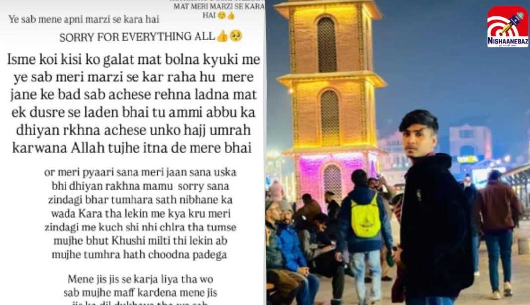 मृतक की पहचान फरहान के रूप में हुई है। बताया जा रहा है कि आत्महत्या से पहले उसने अपने इंस्टाग्राम अकाउंट पर एक स्टेटस भी पोस्ट किया था।स्टेटस में उसने लिखा कि आत्महत्या के लिए वह खुद जिम्मेदार है और जिन लोगों से उसने कर्ज लिया है, उनसे माफी भी मांगी।