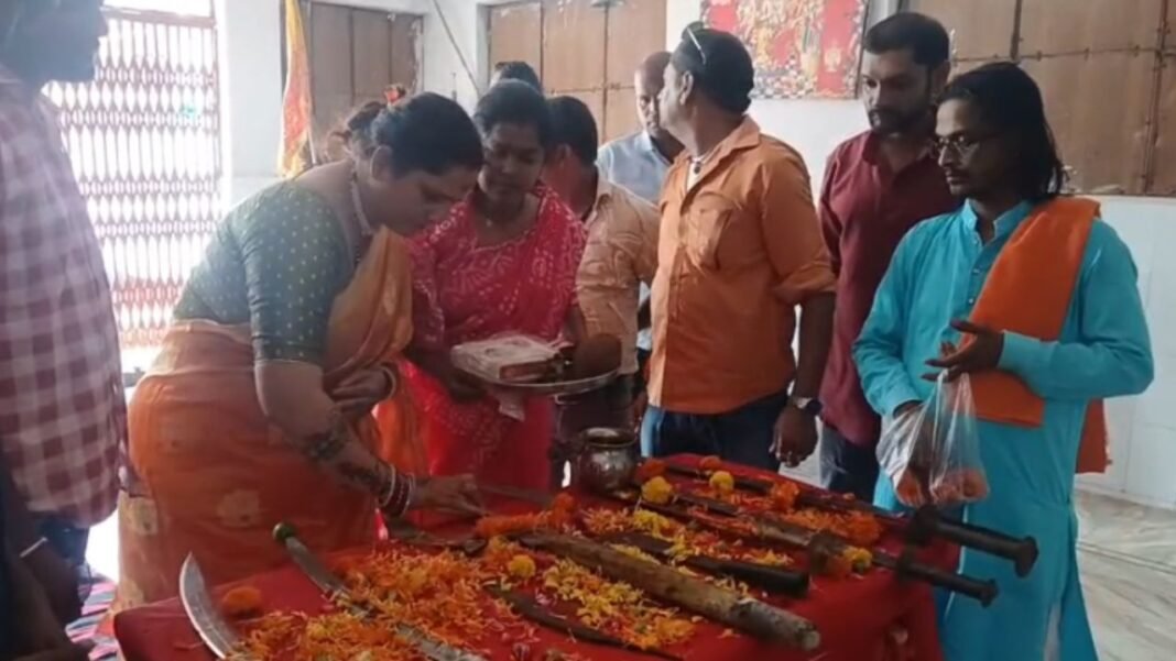 मध्य प्रदेश | दुर्गा अष्टमी के पावन अवसर पर अंतरराष्ट्रीय बजरंग दल की ओर से बड़ा पत्थर दुर्गा मंदिर में मंगलवार सुबह शस्त्र पूजन का कार्यक्रम आयोजित किया गया। इस दौरान बड़ी संख्या में कार्यकर्ता और स्थानीय लोग मौजूद रहे।