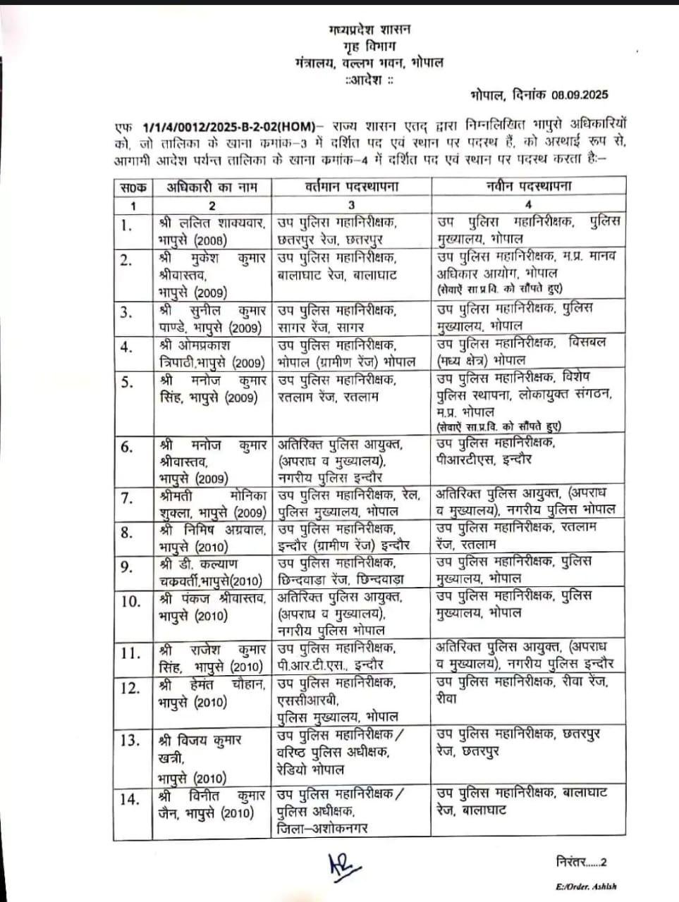 IPS officers transfer : मध्य प्रदेश में बड़ी प्रशासनिक सर्जरी : 20 IPS अफसरों के तबादले, धार और अशोकनगर के SP बदले