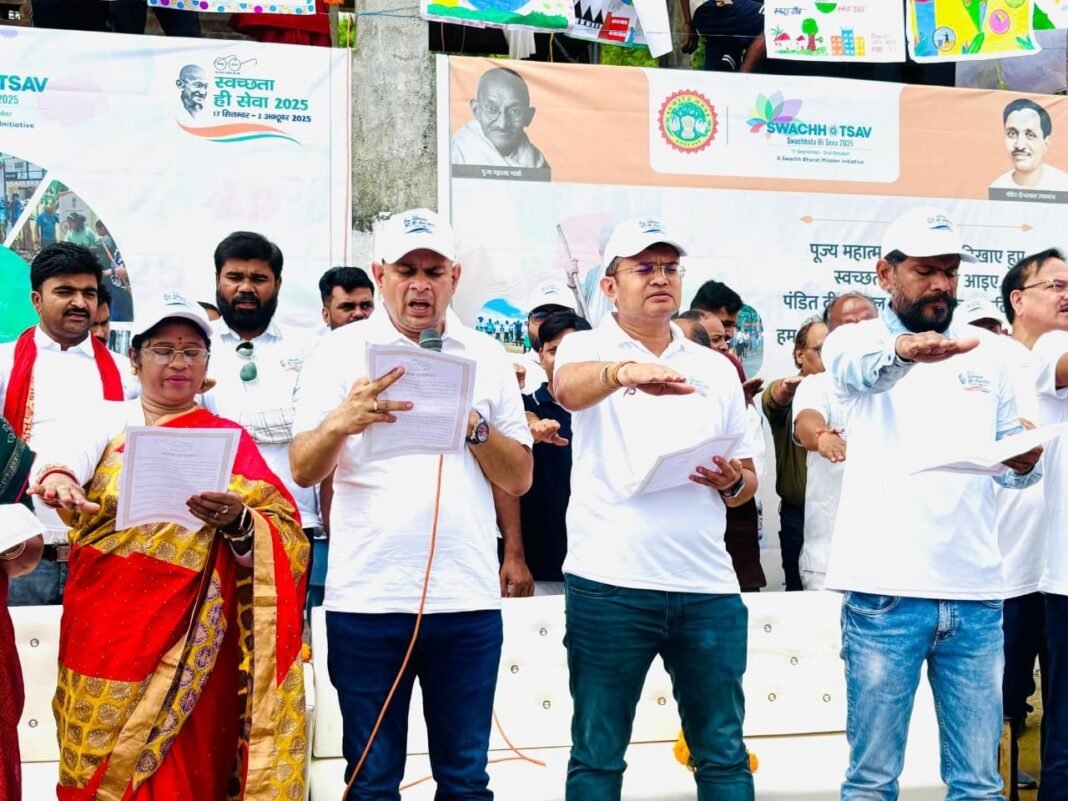 उपस्थित जनसमुदाय ने मन, कर्म और वचन से स्वच्छता शपथ को जीवन में आत्मसात करने का संकल्प लिया और स्वच्छता दीवार पर हस्ताक्षर कर संदेश अंकित किए। कार्यक्रम के अंत में पुल घाट पर लंबी मानव श्रृंखला बनाकर स्वच्छता का संकल्प लिया गया।