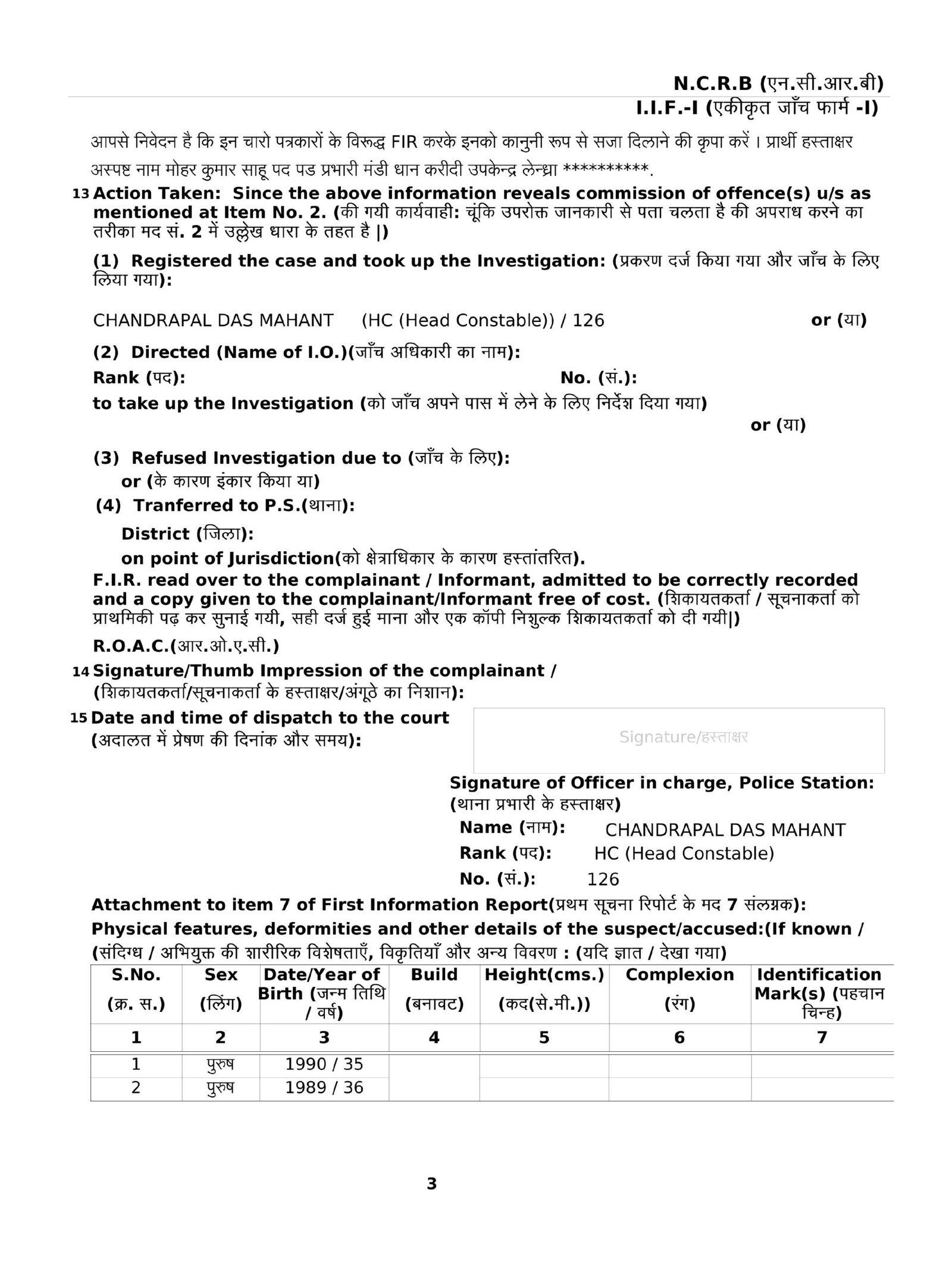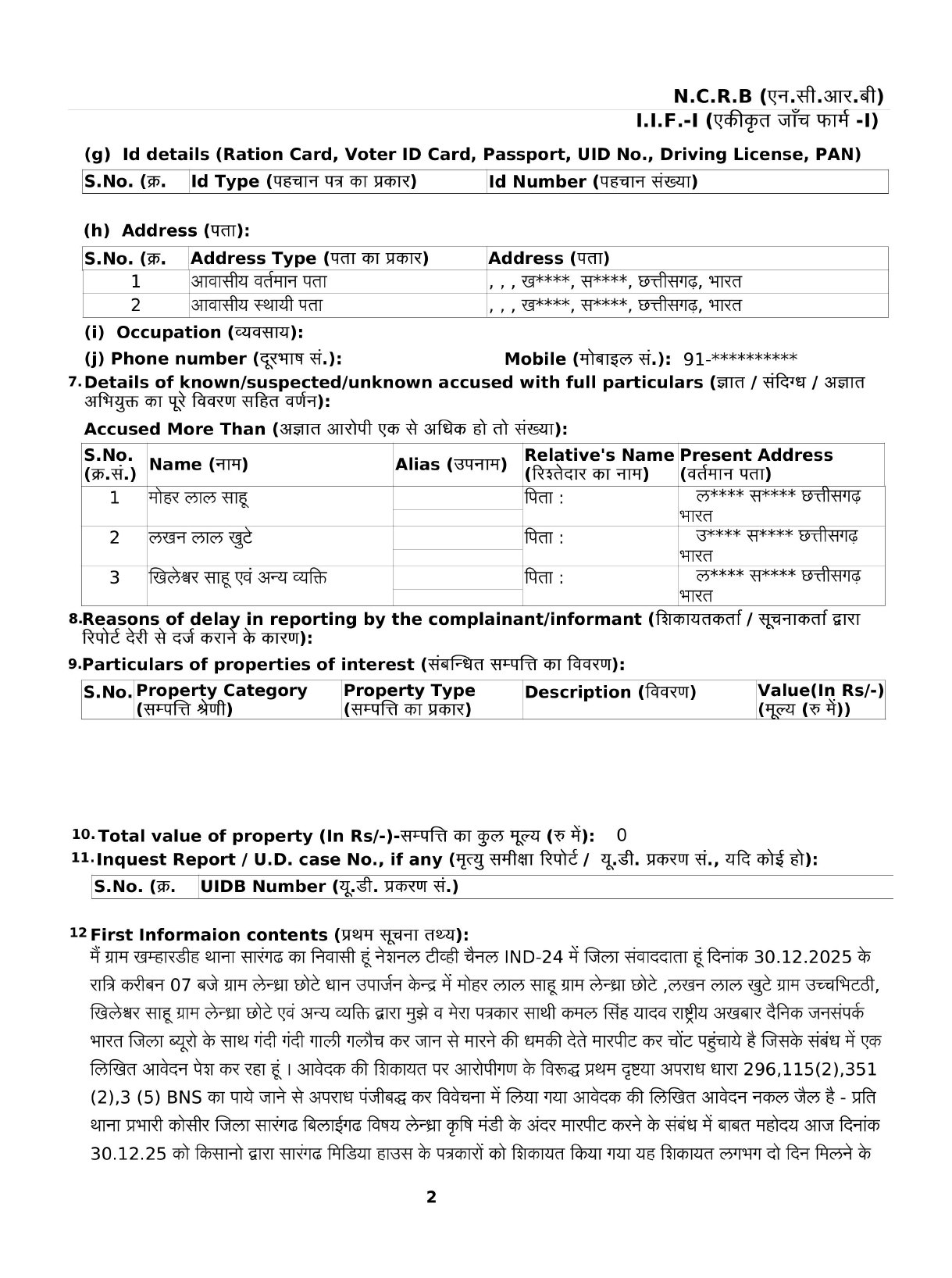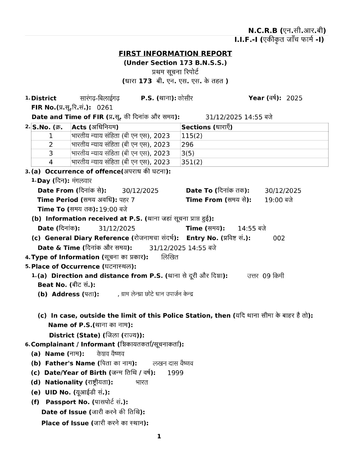 1. पत्रकार की शिकायत पर (FIR 261): अश्लीलता, मारपीट और जान से मारने की धमकी की धाराएं।