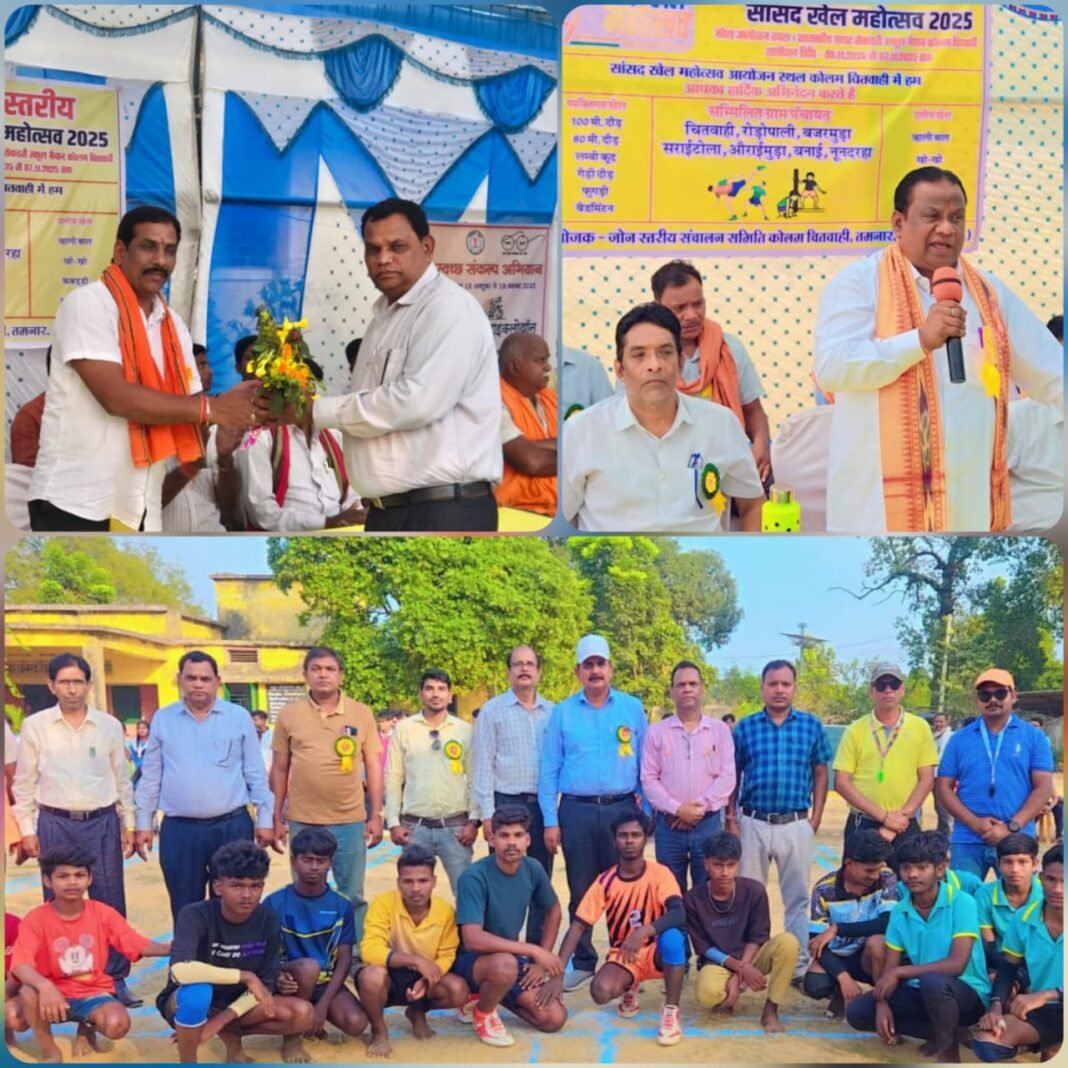 MP Sports Competition : गौरी शंकर गुप्ता/कोलम चितवाही (रायगढ़)। सांसद खेल प्रतियोगिता का भव्य आयोजन हायर सेकेंडरी प्रांगण, कोलम चितवाही में किया गया, जिसमें कई पंचायतों के खिलाड़ियों ने उत्साहपूर्वक भाग लिया। इस प्रतियोगिता का उद्देश्य ग्रामीण खेल प्रतिभाओं को मंच प्रदान करना और उन्हें प्रोत्साहित करना था।