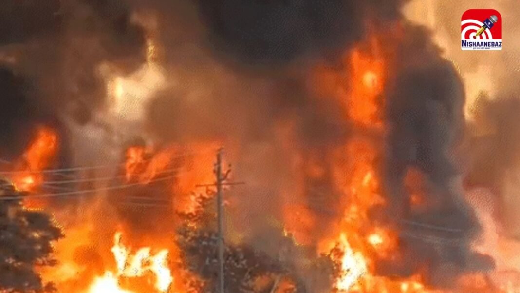 स्थानीय लोगों के अनुसार आग इतनी भयावह थी कि उसकी लपटें करीब 10 किलोमीटर दूर तक देखी गईं। इलाके में अफरा-तफरी का माहौल बन गया और लोग जान बचाकर भागते नजर आए।