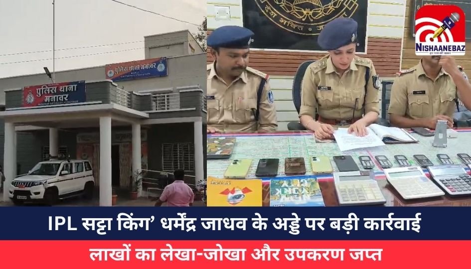 धार | धार जिले के मनावर थाना क्षेत्र के बाकानेर के समीप ग्राम अजंदा के आईपीएल सट्टा किंग धर्मेंद्र जाधव के ठिकाने पर धार जिले की बाकानेर पुलिस ने बड़ी कार्रवाई करते हुए मौके से लाखों रुपए का आईपीएल सट्टे का लेखा-जोखा और उपकरण जप्त किए हैं