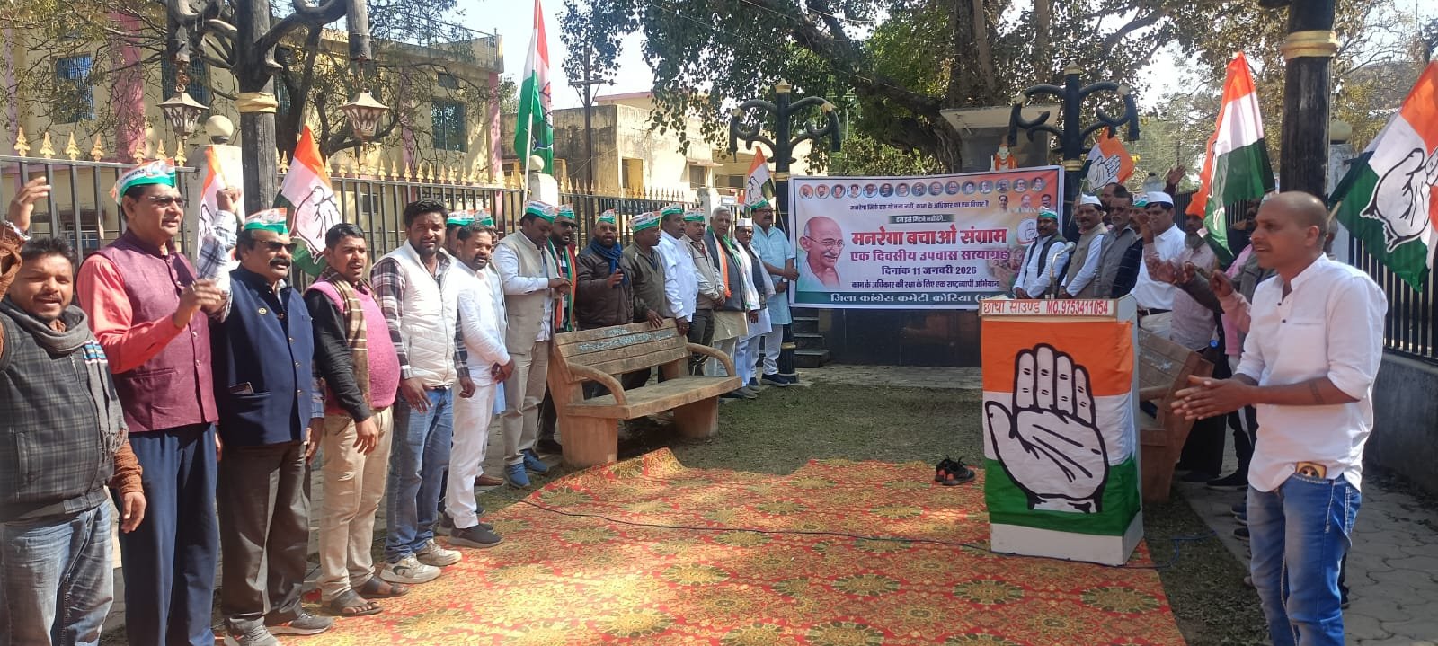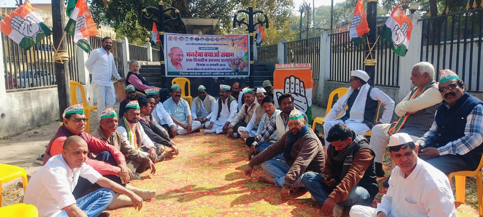 MNREGA Bachao Sangram Korea : कोरिया में ‘मनरेगा बचाओ संग्राम’: गांधी पार्क में कांग्रेसियों ने किया उपवास सत्याग्रह