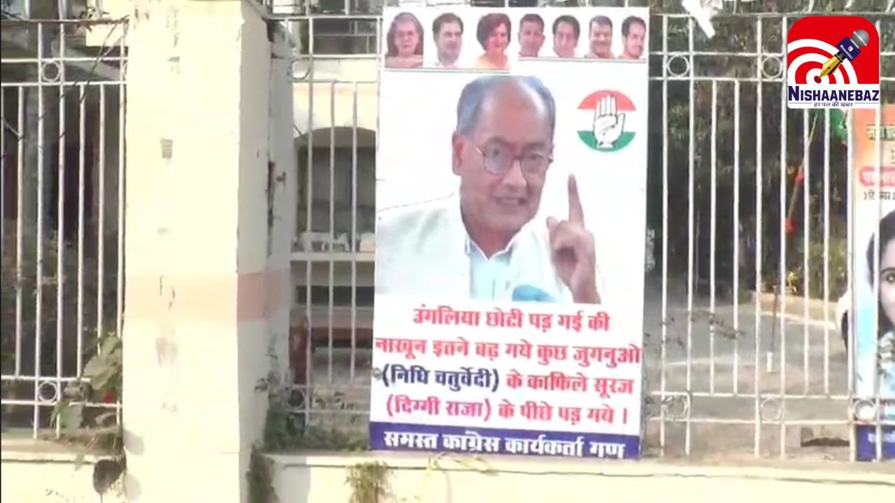 MP Congress Poster War : भोपाल: मध्य प्रदेश कांग्रेस कमेटी (PCC) मुख्यालय के बाहर आज सुबह लगे एक पोस्टर ने राजनीतिक गलियारों में हलचल मचा दी है। यह पोस्टर पूर्व मुख्यमंत्री दिग्विजय सिंह के समर्थकों द्वारा लगाया गया है, जिसमें पार्टी की ही महिला नेता निधि चतुर्वेदी को सीधे तौर पर निशाने पर लिया गया है।