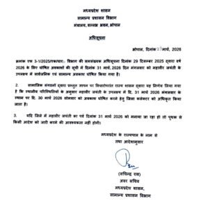 बताया जा रहा है कि सामाजिक संगठनों द्वारा दिए गए ज्ञापन पर विचार करने के बाद राज्य शासन ने यह फैसला लिया है। कई संगठनों ने अवकाश की तारीख में बदलाव की मांग की थी, जिसे ध्यान में रखते हुए यह आदेश जारी किया गया।