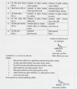 भोपाल : मध्य प्रदेश पुलिस महकमे में नए साल की शुरुआत बड़े प्रशासनिक फेरबदल के साथ हुई है। राज्य सरकार के गृह विभाग ने पुलिस प्रशासन को और अधिक प्रभावी व चुस्त-दुरुस्त बनाने के उद्देश्य से राज्य पुलिस सेवा के 64 डीएसपी स्तर के अधिकारियों के तबादले के आदेश जारी किए हैं। यह आदेश 6 जनवरी 2026 को जारी किया गया, जिसकी सूची गृह विभाग द्वारा आधिकारिक तौर पर सार्वजनिक कर दी गई है।