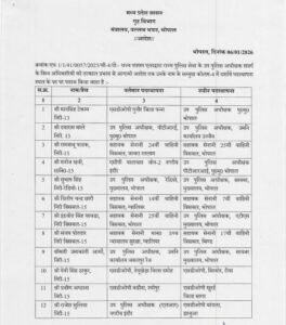 भोपाल : मध्य प्रदेश पुलिस महकमे में नए साल की शुरुआत बड़े प्रशासनिक फेरबदल के साथ हुई है। राज्य सरकार के गृह विभाग ने पुलिस प्रशासन को और अधिक प्रभावी व चुस्त-दुरुस्त बनाने के उद्देश्य से राज्य पुलिस सेवा के 64 डीएसपी स्तर के अधिकारियों के तबादले के आदेश जारी किए हैं। यह आदेश 6 जनवरी 2026 को जारी किया गया, जिसकी सूची गृह विभाग द्वारा आधिकारिक तौर पर सार्वजनिक कर दी गई है।