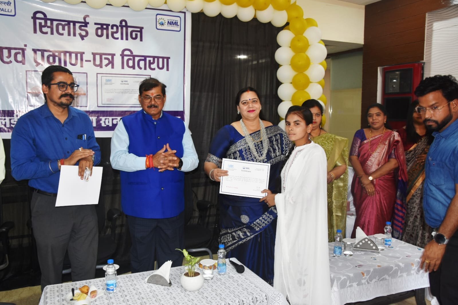 NML Talaipalli CSR Initiative : गौरी शंकर गुप्ता/घरघोड़ा। एनएमएल तलईपल्ली कोयला खनन परियोजना द्वारा सामुदायिक विकास पहल के अंतर्गत एक विशेष कौशल प्रमाणन एवं सिलाई मशीन वितरण कार्यक्रम का भव्य आयोजन किया गया। इस गौरवशाली अवसर पर परियोजना प्रभावित क्षेत्रों की 51 महिलाओं को प्रशिक्षण प्रमाण पत्र के साथ सिलाई मशीनें प्रदान की गईं। इस पहल का मुख्य उद्देश्य स्थानीय महिलाओं को हुनरमंद बनाकर उन्हें स्वरोजगार के बेहतर अवसर उपलब्ध कराना है, जिससे वे अपने परिवार की आर्थिक स्थिति को मजबूती दे सकें।