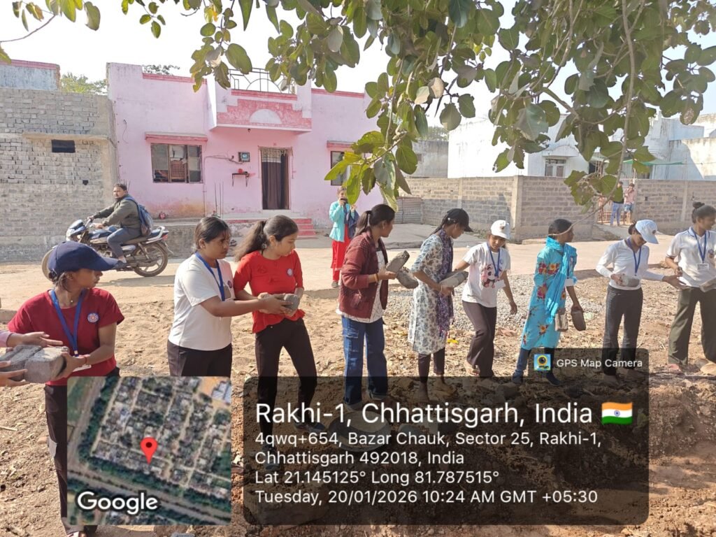 NSS Special Camp : नवा रायपुर। शासकीय नवीन महाविद्यालय नवागांव सेक्टर-28, अटल नगर द्वारा ग्राम राखी में आयोजित राष्ट्रीय सेवा योजना (NSS) के सात दिवसीय विशेष शिविर का बुधवार, 21 जनवरी 2026 को सफलतापूर्वक समापन हुआ। “सर्वांगीण विकास हेतु संकल्पित एवं समर्पित युवा” के ध्येय वाक्य के साथ आयोजित इस शिविर में 42 वर्तमान स्वयंसेवकों और 8 भूतपूर्व स्वयंसेवकों ने उत्साहपूर्वक भागीदारी की। समापन समारोह की शुरुआत मां सरस्वती और स्वामी विवेकानंद के तैलचित्र पर माल्यार्पण एवं दीप प्रज्वलन के साथ की गई।