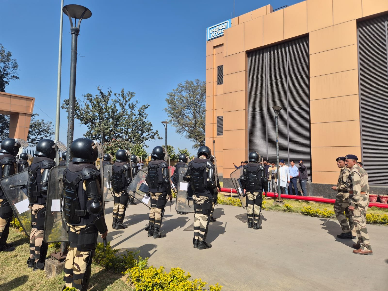 मॉक ड्रिल के दौरान सीआईएसएफ के जवानों ने अपनी दक्षता का शानदार प्रदर्शन किया। इसमें दिखाया गया कि किस प्रकार एक उग्र भीड़ को नियंत्रित किया जाता है, परिसर में अनधिकृत प्रवेश को कैसे रोका जाता है और कम से कम बल प्रयोग के साथ स्थिति को कैसे संभाला जाता है। जवानों ने घेराबंदी (Cordoning) और दंगा नियंत्रण उपकरणों के प्रभावी उपयोग का जीवंत प्रदर्शन किया।