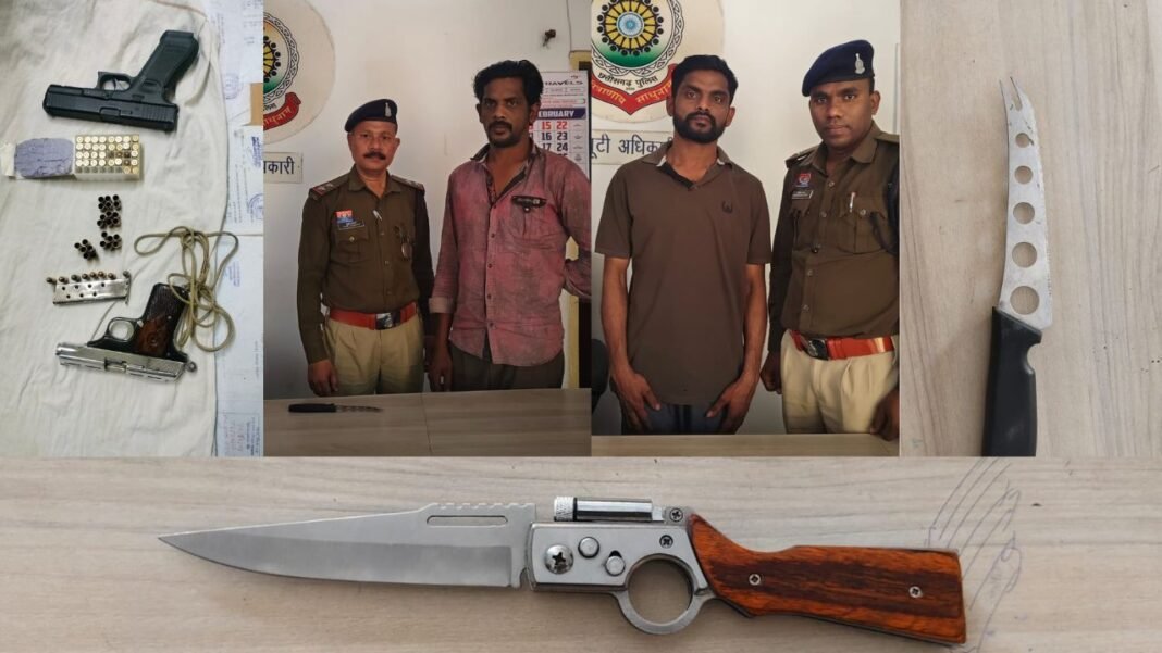 Pandri Thana Knife Arrest : रायपुर (27 फरवरी 2026): राजधानी रायपुर में सार्वजनिक सुरक्षा और शांति व्यवस्था बनाए रखने के लिए पुलिस ने अवैध हथियार रखने वालों के खिलाफ मोर्चा खोल दिया है। पुलिस उपायुक्त (नॉर्थ जोन) श्री मयंक गुर्जर (IPS) के कड़े निर्देशों के बाद थाना पंडरी की टीम ने चाकू लेकर घूम रहे दो सगे भाइयों को रंगे हाथों गिरफ्तार किया है।
