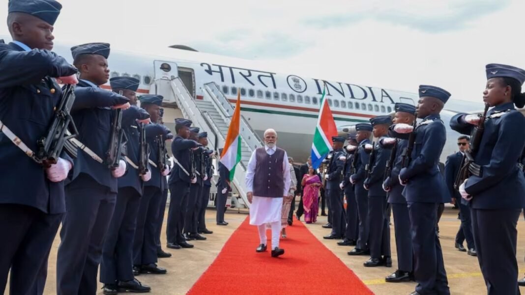 जोहान्सबर्ग एयरपोर्ट पर प्रधानमंत्री मोदी का स्वागत उत्सव के रूप में किया गया। दक्षिण अफ्रीकी प्रशासन, भारतीय समुदाय और स्थानीय लोगों ने फूलों, सांस्कृतिक नृत्य और दोनों देशों के राष्ट्रीय ध्वजों के साथ उनका अभिनंदन किया। यह दृश्य भारत–दक्षिण अफ्रीका के घनिष्ठ संबंधों और बढ़ते विश्वास को दर्शाता है।