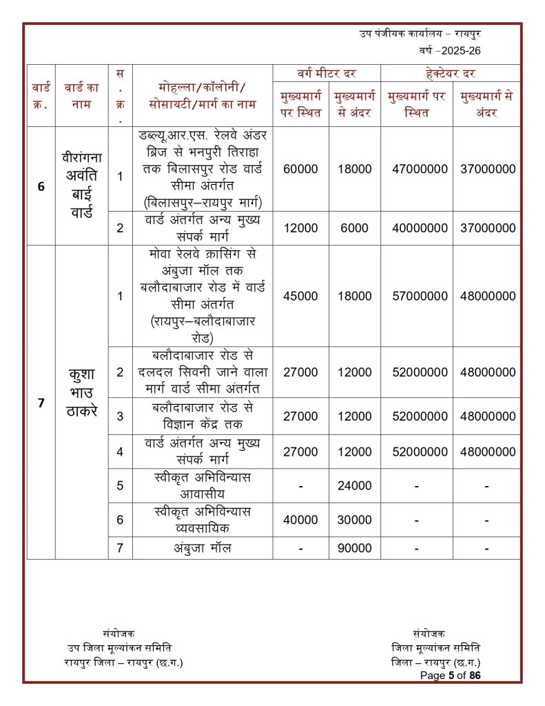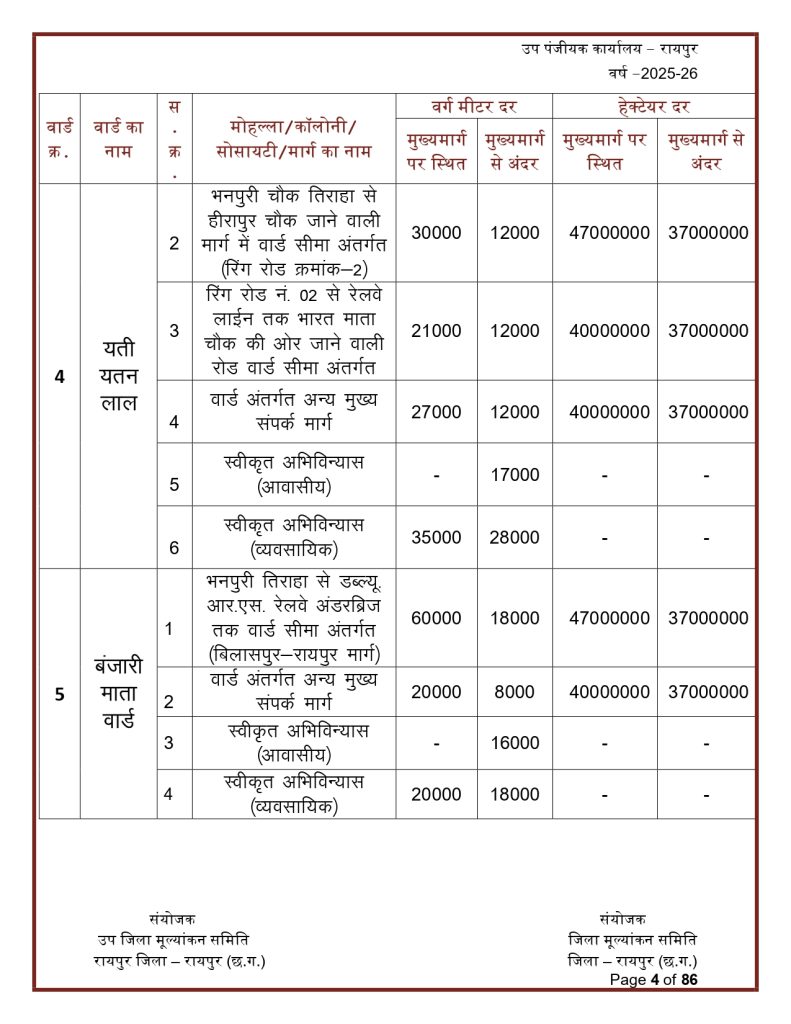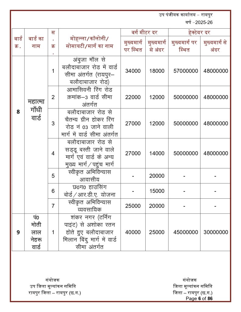 Raipur Land New Guideline : पंजीयन और वाणिज्यिक कर मंत्री ओ पी चौधरी के निर्देश पर नई दरों को वैज्ञानिक और पारदर्शी तरीके से तैयार किया गया है। नगरीय क्षेत्रों में दरों को रोड-वाइज तैयार किया गया है ताकि समान सड़क और समान परिस्थितियों वाले क्षेत्रों की दरें एक जैसी हों। अत्यधिक कंडिकाओं को समायोजित कर संख्या कम की गई है, जिससे नागरिकों को दरों को समझने में आसानी होगी। ग्रामीण क्षेत्रों में सभी गाँवों की दरों को नक्शे में प्रविष्ट कर समान मार्ग और समान परिस्थितियों वाले गाँवों की दरों को यथासंभव समान और तर्कसंगत बनाया गया है।