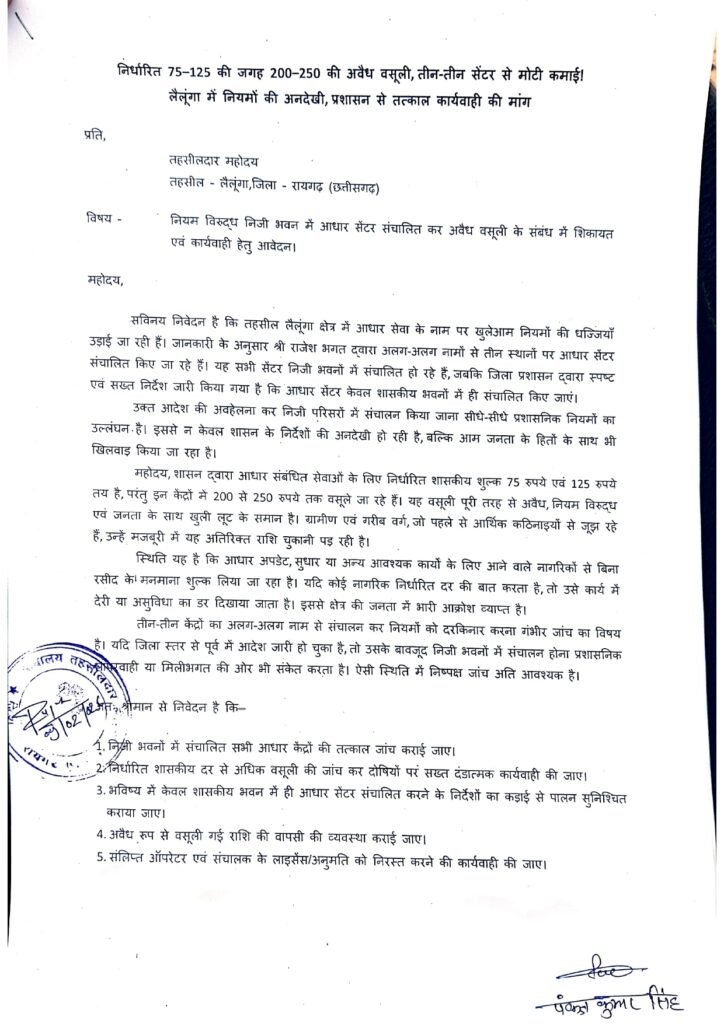 सावधान: अगर आप लैलूंगा में आधार सुधरवाने की सोच रहे हैं, तो जेब में सरकारी रेट नहीं, बल्कि ‘संचालक रेट’ लेकर जाएं, वरना सर्वर के साथ-साथ आपका नसीब भी ‘डाउन’ ही रहेगा!