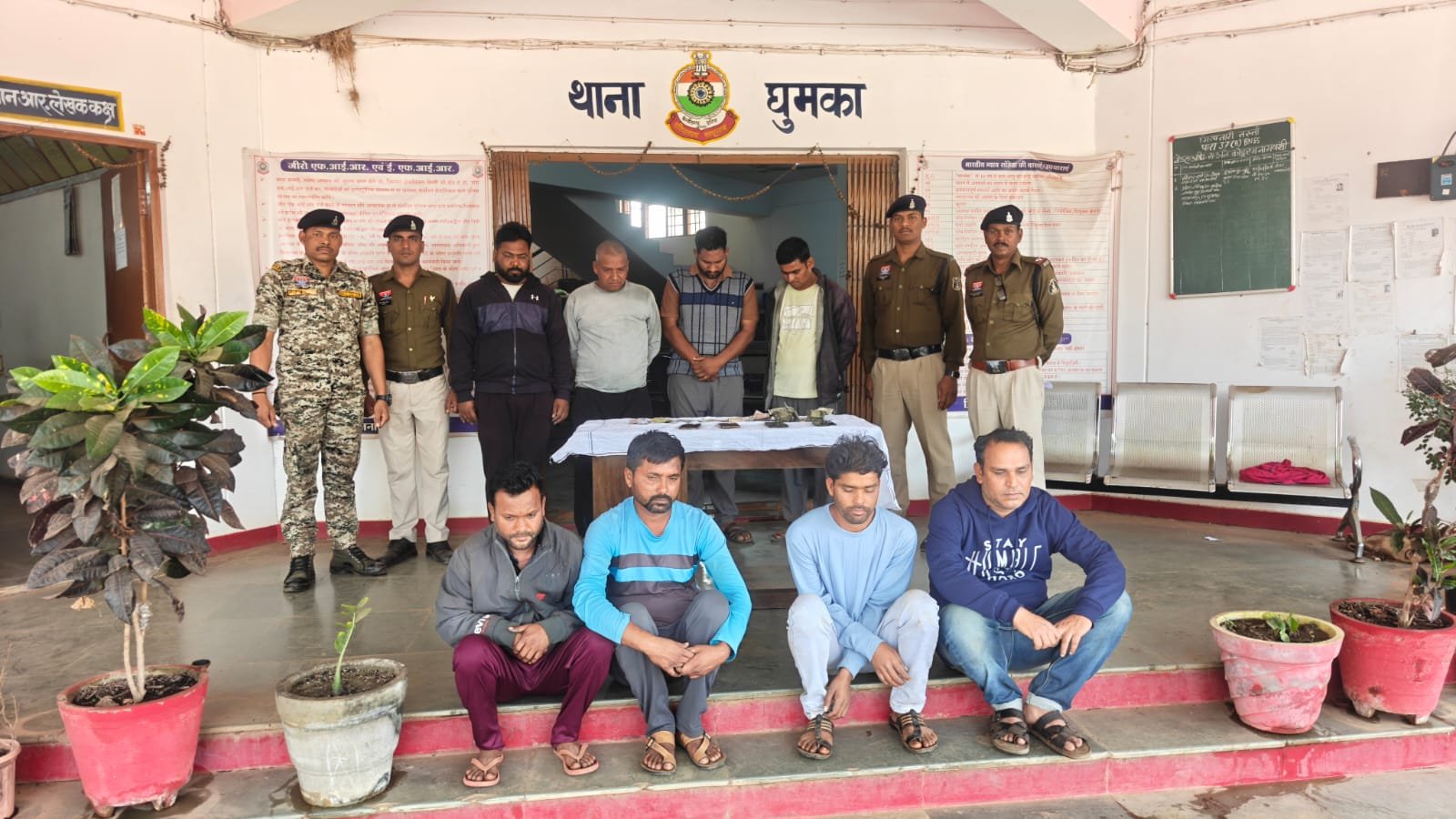 जानकारी के मुताबिक, घुमका थाना प्रभारी निरीक्षक विजय मिश्रा और साइबर सेल की संयुक्त टीम ने चौरसिया बाड़ी के पास घेराबंदी कर जुआ फड़ पर छापा मारा। वहाँ ताश की 52 पत्तियों पर हार-जीत का दांव लगा रहे 8 जुआरियों को रंगे हाथों पकड़ा गया। आरोपियों की पहचान मुकेश तिवारी, मनोज बघेल, शैलेन्द्र वर्मा, प्रमोद वर्मा, राकेश वर्मा, देवा वर्मा, फागूराम यादव और खेमचंद वर्मा ऊर्फ पप्पू के रूप में हुई है, जो सभी ग्राम घुमका के ही निवासी हैं।