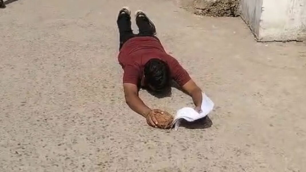 Rewa Collectorate Protest : रीवा (24 फरवरी 2026): कहते हैं कि जब सीधी उंगली से घी न निकले तो उंगली टेढ़ी करनी पड़ती है, लेकिन रीवा जिले के जवा जनपद क्षेत्र के एक युवक ने प्रशासन को जगाने के लिए खुद को ही जमीन पर लिटा दिया। मंगलवार को जनसुनवाई के दौरान धनेश सोनकर नाम का युवक हाथ में नारियल लेकर दंडवत (जमीन पर लेटकर प्रणाम करते हुए) होता हुआ कलेक्ट्रेट कार्यालय पहुँचा। यह नजारा देख अधिकारी भी असहज नजर आए।