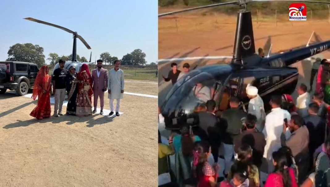 M.P News : रीवा में हेलीकॉप्टर से निकली शाही बारात, दूल्हे की शाही एंट्री बनी चर्चा का विषय